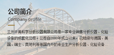 蘭州千美科學(xué)分析儀器有限公司是一家專業(yè)銷售分析儀器、化驗(yàn)設(shè)備的成套化公司。公司自2000年成立以來,已陸續(xù)與德國(guó)、美國(guó)、瑞士、奧地利等等國(guó)內(nèi)外的...